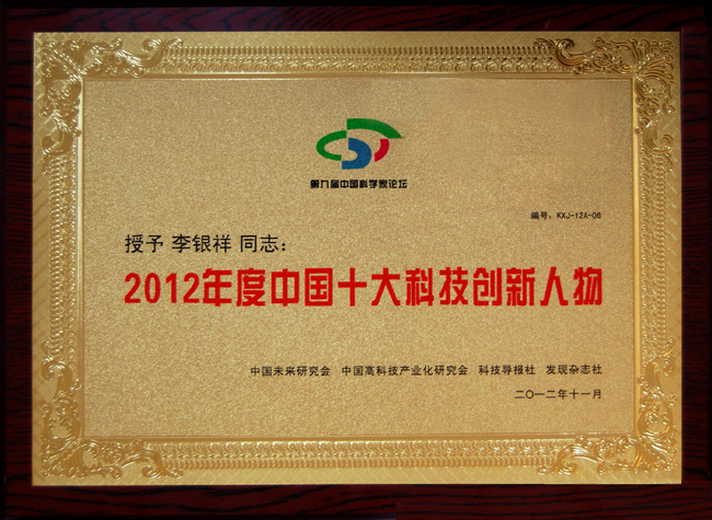 董事長李銀祥榮獲“2012年度中國十大科技創新人物”獎