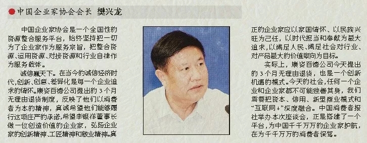 實際上,康姿百德公司今天提出的3個月無理由退貨,也是一個創新機遇的模式。今天的社會,任何一個企業和企業家都不可能獨善其身,我們需要把資本、信用、新型商業模式和“互聯網+”深度融合。中國消費者報社舉辦本次座談會,正是搭建了一個平臺,為中國千千萬萬的企業家護航,在為千千萬萬的消費者保駕。