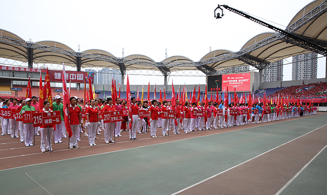 全(quan)國各地康姿百德(de)健身操比賽隊伍(wu)入場