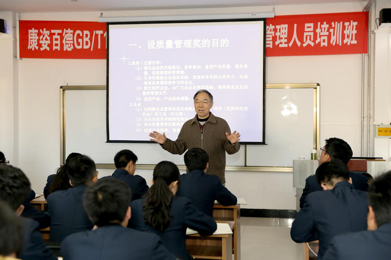 2016年3月11日,河北質量技術監督局原處長倪書元先生受邀來到康姿百德科技園,講授GB/T19580《卓越績效評價標準》和GB/Z19579《卓越績效評價準則實施指南》兩門課程,康姿百德董事長李銀祥先生與包括管培生在內的35名公司管理人員參加本次培訓。