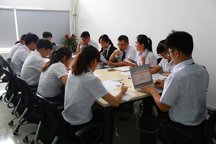 參與競聘的員工認真聽各中心領導介紹各中心和此次競聘的相關事宜