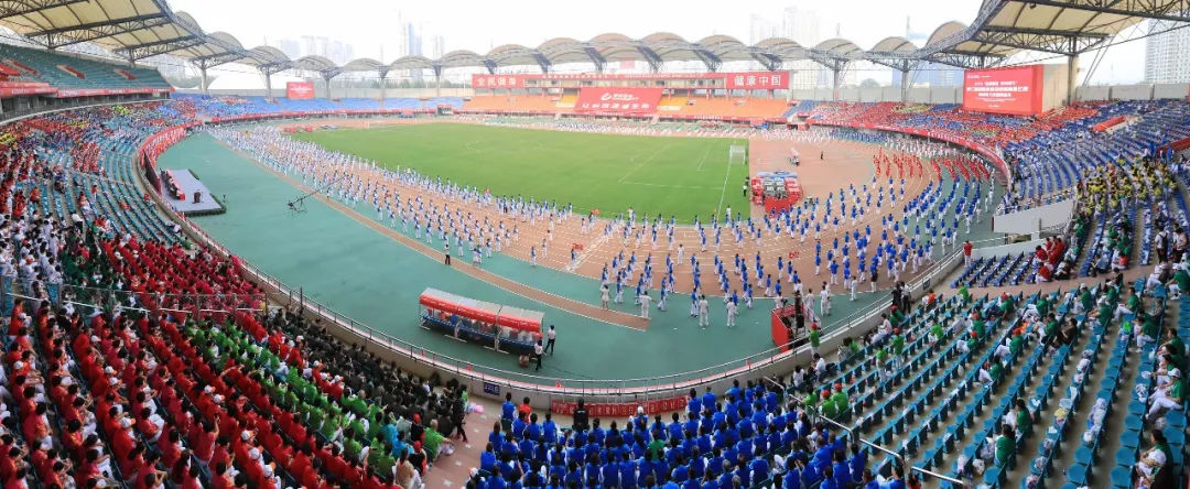 今天,共有近萬名健身愛好者參賽。大家各個精神抖擻,踏著康姿百德健身操音樂節拍,整齊劃一地舞動起來,將快樂綻放,把健康傳遞!