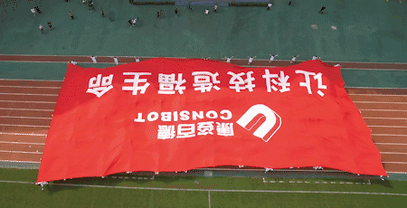 活動伊始,伴隨著慷慨激昂的《走向復興》音樂,一幅608平方米的巨型“讓科技造福生命”紅旗步入賽場。康姿百德工作人員高舉旗幟,整齊自如地緩緩前行,給人以極大的視覺沖擊。