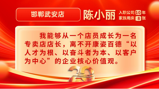 康姿百德20周年專賣店員工的系列故事會持續推出,讓我們一起期待其他地區專賣店員工代表的精彩故事吧!