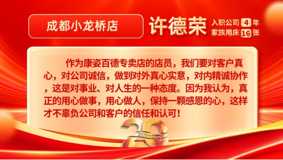 康姿百德20周年專賣店員工的系列故事會持續推出,讓我們一起期待其他地區專賣店員工代表的精彩故事吧!