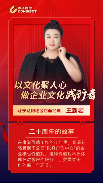 今年是康姿百德集團成立20周年。在20年的發展歷程中,涌現出一大批在經營管理、原料采購、品牌宣傳、暖心服務、人才引進和培訓等各個領域立足崗位、奉獻建功的優秀代表。讓我們一起看看這些榜樣故事。本期帶你走進康姿百德遼寧遼陽地區店面經理王新巖。