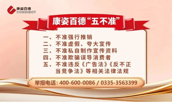 為了規范制度,讓好的政策得以被嚴格執行,康姿百德也加大企業內部的巡查力度,不定期開展市場巡查活動,嚴格規范市場人員誠信、規范的銷售行為,確保全國各專賣店的良好運行。同時,要求各個專賣店必須在醒目位置懸掛“五不準”展板,規定不準強行推銷;不準虛假、夸大宣傳;不準私自制作宣傳資料;不準欺騙誤導消費者;不準違反《廣告法》《反不正當競爭法》等相關法律法規規定。門店所有工作人員必須嚴格遵守“五不準”原則,站在消費者的角度去想問題,切實了解消費者的真正需求。