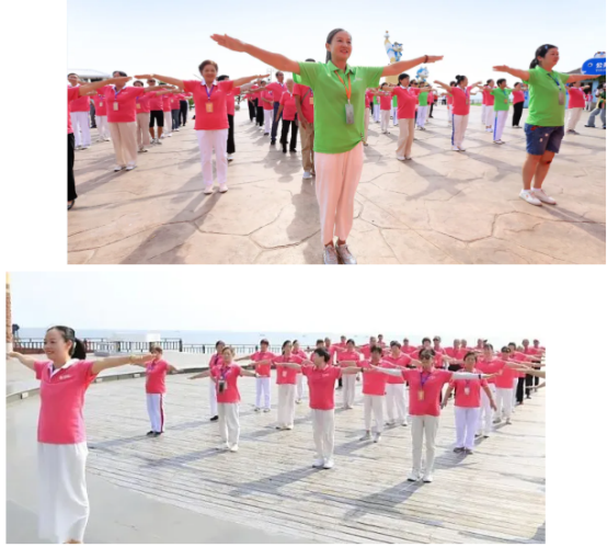 活動伊始,來自吉林延邊、吉林長春、黑龍江哈爾濱、黑龍江牡丹江、遼寧沈陽、江西九江、山西忻州、安徽阜陽、浙江寧波、河北承德、湖北隨州、湖南益陽、湖南郴州、四川廣元、四川綿陽、山西晉中、河北石家莊、內蒙古呼和浩特、黑龍江大慶、湖北武漢、四川達州、湖北黃岡、湖北廣水、遼寧盤錦、天津、湖南湘潭、四川成都、云南昆明等地的健身操愛好者們齊聚一堂,他們帶著對健身的熱愛、對健康的追求,共同點燃了這場全民健身盛宴的第一把火,讓北戴河與山海關的每一寸空氣都彌漫著激情與活力。