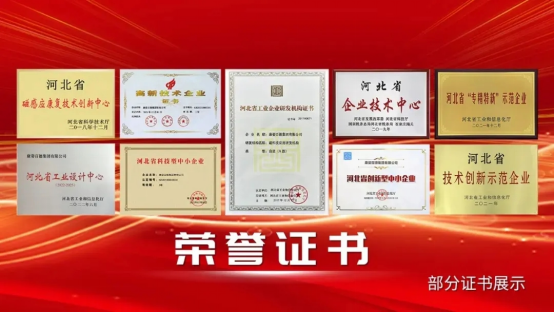 康姿百德的科研實力,獲得了社會各界的一致認可,先后榮獲“高新技術企業”“河北省磁感應康復技術創新中心”“河北省技術創新示范企業”“河北省‘專精特新’示范企業”“河北省企業技術中心”“磁科技應用研發機構(A級)”“河北省科技型中小企業”“磁科技應用工程技術研究中心”等多項資質和榮譽。