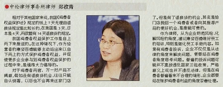 我國消費者權益保護工作是自上而下來推進的。在這種情況下,作為經營者的康姿百德能夠主動站出來以自下而上的方式保護消費者權益,并促使更多企業參與到消費者權益保護的過程中來,是值得大力倡導的。